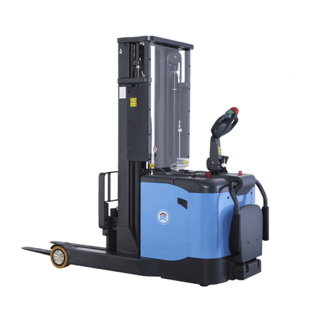 The E-13GS und E-15GS electric reach pallet stackers are equipped with an ergonomic REMA hand tiller with controls on both sides. Both left- and right-handed users can operate the E-13GS und E-15GS electric pallet stackers.