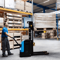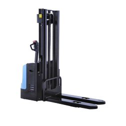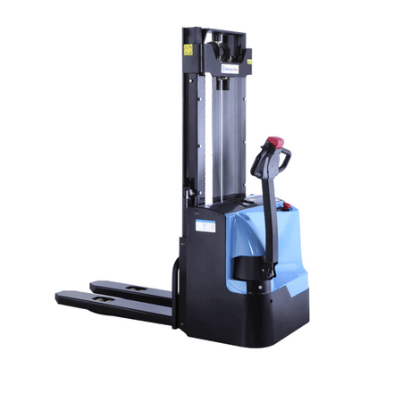 Excellent performance data and lifting heights up to 4200 mm distinguish the E-DH12-MG electric pallet stacker. With a load capacity of 1200 kg, it carries almost all common pallets. High-quality mast sections and precision mast rollers guarantee the quality and safety of the electric pallet stacker.