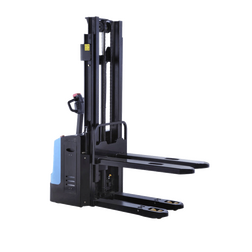 The E-DH12MG-FH electric pallet stacker is equipped with many functions which are fully automatic and make operation even easier and safer. For example, the driving speed is reduced automatically when a lifting height of 500 mm is exceeded, or the automatic brake of the electric pallet stacker engages when it stops on ramps, ascending or descending gradients.