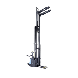 Increase your goods handling and efficiency in the warehouse with the E-DHT-S16-PL electric pallet stacker. With a load capacity of 1600 kg, it moves and stacks almost every standard pallet in the warehouse. You can choose between a lifting height of 4500 and 5000 mm. The clearance height, like the lifting height, differs depending on the model. It varies between 5000 and 5500 mm.