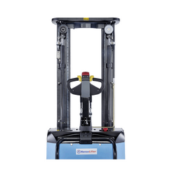 The HanseLifter E-DHT-S16-PL electric pallet stacker has a folding ride on platform and is ideally suited for quick loading and unloading of lorries or containers. The E-DHT-S16-PL is also intended for order picking. The E-DHT-S16 electric pallet stacker is equipped with a practical triplex mast and lifts up to 1600 kg. The triplex mast not only provides higher lifting heights, it is also equipped with free lift.