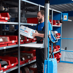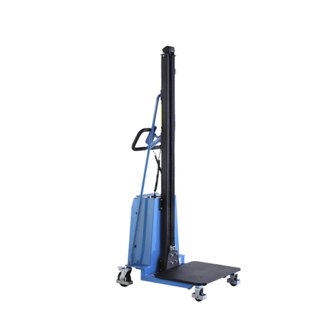 The models with up to 150 kg load capacity are equipped with a water-repellent PVC platform, while the models with a 250 kg load capacity have a sturdy metal platform. The electric mini lifts have maintenance-free batteries installed and an integrated charger with approx. 1.5 m supply cable. The smooth-running and abrasion-resistant rollers made of polyurethane (PU) are quiet and have good grip. The steering wheels are equipped with parking brakes.