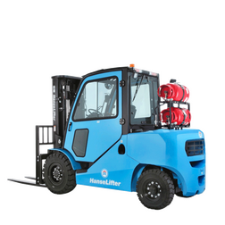 Compared to conventional diesel forklift trucks, the HLGS-XF 5.0 - 7.0 t LPG forklift trucks have some relevant advantages. LPG combustion creates significantly fewer pollutant emissions than diesel combustion. Nevertheless, the HLGS-XF 5.0 -7.0 t LPG forklift trucks can still draw on the full power of a combustion engine. Due to their low emissions when compared to diesel forklift trucks, LPG forklift trucks are the ideal devices for use in warehouses and halls. Other advantages of the lower-residue combustion are the lower maintenance requirements and longer service life of the engines.