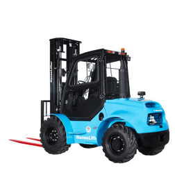 The HLRT50-XF (4WD) all terrain forklift trucks are the ideal forklift trucks to lift and transport heavy loads up to 5 tons in rough terrain. The equipment includes large pneumatic tyres with improved brakes, a differential gearbox with automatic locking function and an optimised steering axle assembly.