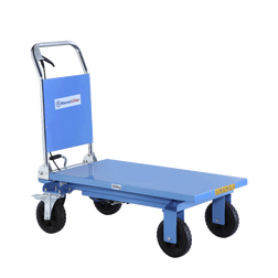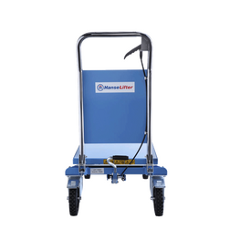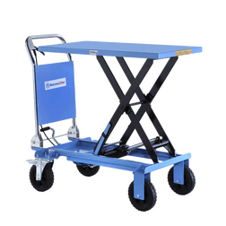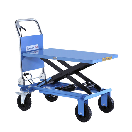 The SPAG200 all-terrain lift table is particularly suited for work in rough terrain, such as construction sites or on gravelled areas. Its rubber tyres and high ground clearance mean that this all terrain lift table is particularly suitable for use in rough terrain. This is complemented by a load capacity of 200 kg and a quality hydraulic pump which is fully extended with approx. 9 lifting movements.